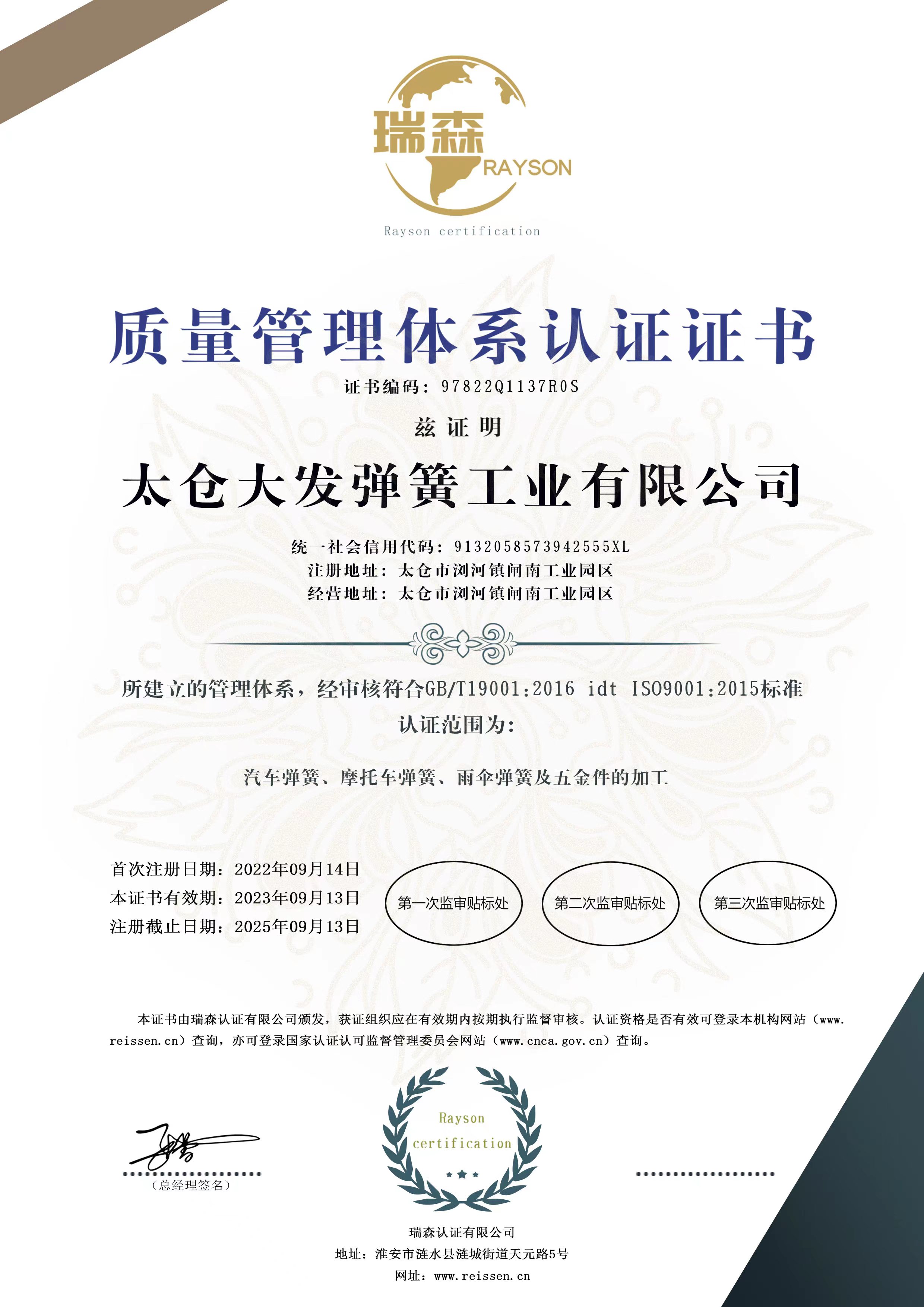 太倉大發彈簧工業有限公司由黃金樹先生于1967年始創于臺灣,是一個集雨傘、電子、五金機械、自行車、摩托車、汽車等的彈簧配件生產、加工、輔助設計服務的綜合性企業,其中1990年創辦的廈門大發彈簧公司、2000年創辦的深圳大發彈簧公司、2002年創辦的太倉大發彈簧公司均位于經濟發展地區,地理位置佳。我們憑借在彈簧制造業的多年豐富知識與技術,并著眼于以客戶為導向,秉持“以人為本,以質為先,以客為主,持續創新”的經營理念,強化競爭優勢。公司導入ISO9001: 2000質量管理體系,執行ISO14000:2000管理方式,倡導安全、高質量、高素質的生產。